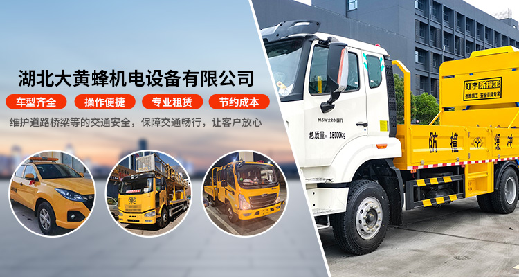 湖北大黄蜂机电设备有限公司自有14-26米桥检车租赁,70-100K防撞车出租,17-32米高空车出租,4.2米工程黄货车出租,预警车和打拔桩机也可出租,除自有桥梁检测车和防撞车等随时根据客户需求调配外,还整合了全国一批有实力的公司和个人设备,已达300多台,能为处于不同自然条件、不同建筑特点的各种桥梁,高速,隧道等提供相对应类型的桥检车出租,防撞缓冲车租赁,高空作业车出租等。本公司立足苏州辐射全国,车辆分布在全国各地不同地区,就近调度车辆,为客户提供便捷服务的同时也降低了彼此的成本,竭诚与社会各界合作,共创双赢。欢迎来电:15802010201 公司还可承接大桥下部结构全面的检查维修与养护,可安全有保障的进行落水管安装,泄水管安装,航道标牌标识安装,桥梁监测传感器安装,桥墩护板安装,桥墩柱防撞缓冲垫安装,裂缝修补,封道班组施工,桥梁同步顶升,抬高,桥梁裂缝修补,桥梁检测、工程验收、亮化工程、桥梁防腐油喷粉刷、桥梁专项维修、隧道专项维修、铁路桥梁维修、桥面防水施工、碳钎维加固、墩柱纠偏、桥墩水下加固工程、桥梁防腐亮化,支座更换,拉索养护更换、新建高速竣工验收等业务,公司拥有公路养护二类、特种不分等级、防水防腐二级资质,安全许可证,还可生产桥梁压浆料、支座灌浆料、伸缩缝快速修补料、粘钢灌注结构胶、生产碳钎维布。 我们虚心听取客户的宝贵意见,适时引进不同类型的机械设备,以齐全的工程车辆,高效率,重安全的施工团队尽量满足不断变化发展的市场,。 我们的愿望:维护道路桥梁等的交通安全,保障交通畅行!让客户放心。 我们的价值观:崇尚工匠精神,承接一个项目,塑造一个精品,生产的每一种产品都能成为精品。